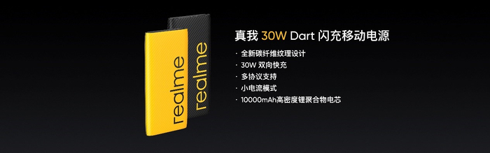 realme 真我快充移动电源2支持18W快速双向充电及多种快充协议,支持小电流模式,能够为各种AIoT产品充电;realme 真我30W Dart闪充移动电源采用碳纤维纹理设计,支持realme独有30W Dart双向闪充。两款产品都具备黄色和黑色两种专属配色,搭载10000mAh高密度聚合物锂电池。快充移动电源2售价为109元,30W Dart闪充移动电源售价为199元。