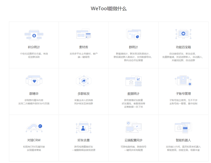 Wetool是一个微信社群管理工具,从官网上介绍来看,它的功能比原始版微信强太多了,支持群统计、自动接受好友、批量群邀请、自动踢人、多群转发、好友去重、智能机器人等等,如果是做微商或者微信营销的,这个软件绝对好用,而且还有更高级的企业版,功能更多,当然会收费。