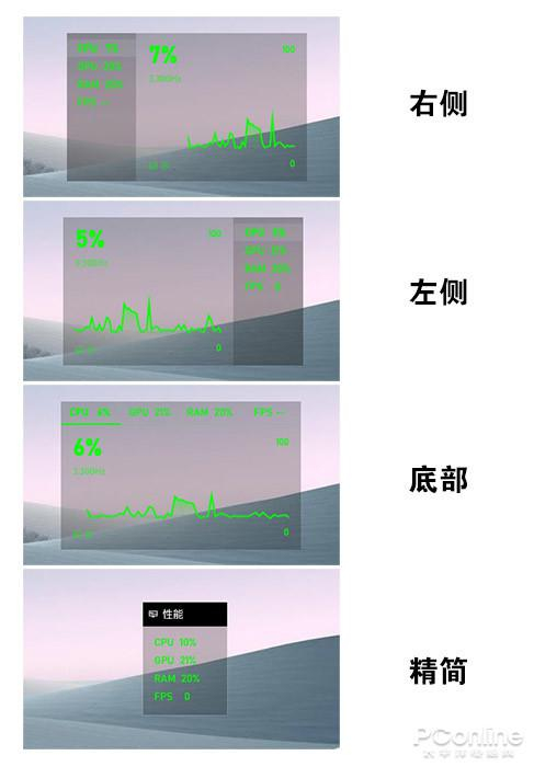 除了上面这种默认样式外,Xbox Bar还提供了其他几组外观。同时你也可以点击快捷按钮,隐藏曲线图。总之这是一项并不为人所知的功能,但使用体验真的很棒!感兴趣的小伙伴不妨试一试吧!