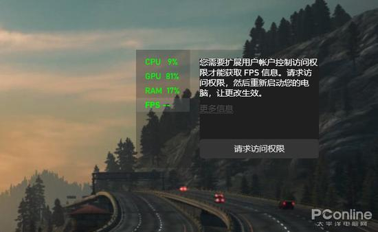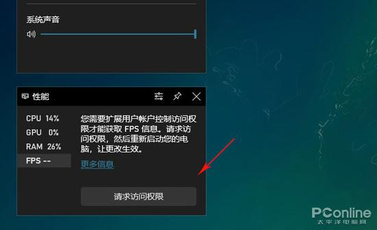 2。 将左下角“性能”模块切换到“FPS”标签,点击“请求访问权限”按钮 ;