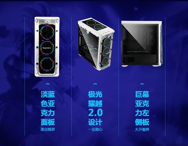 下面我们就推荐一款全侧透稳定可靠的机箱,鑫谷(Segotep)LUX重装版,正面的亚克力面板为淡蓝色,配色上有黑白两种选择,而侧边达到了全透的效果,很适合RGB玩家。