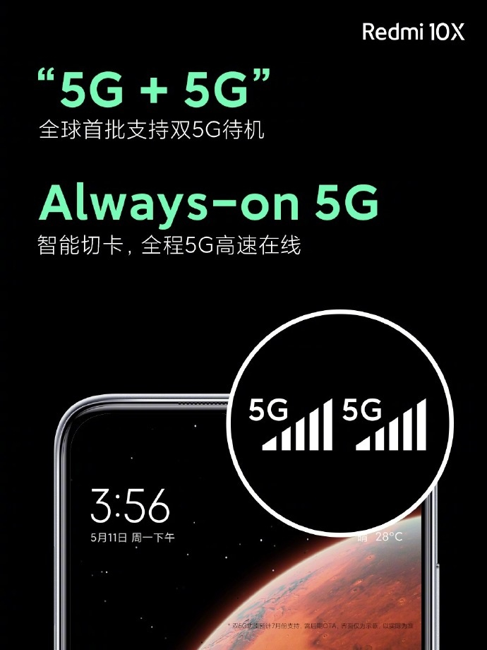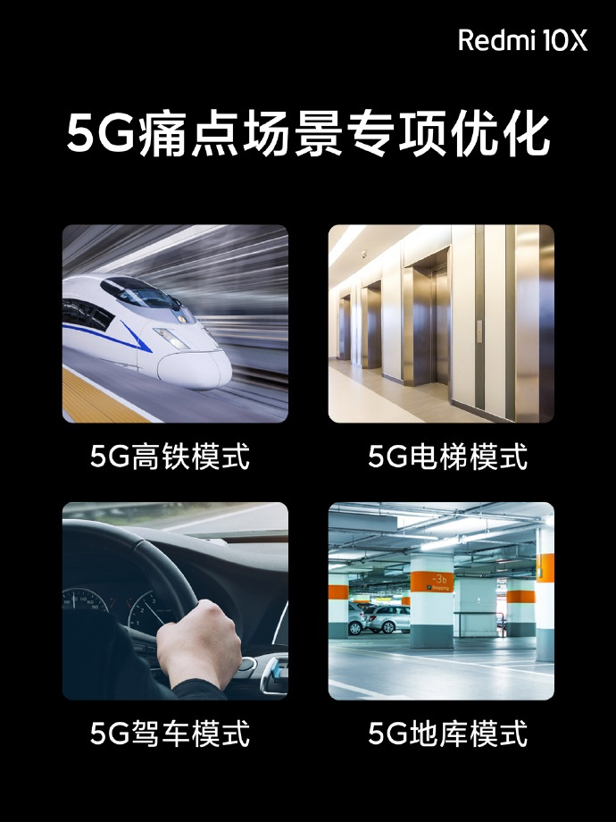 IT之家获悉,Redmi 10X是全球首批双5G待机,两张5G卡随时智能切换,全程5G高速在线。针对高铁、电梯等5G痛点场景进行专项优化,超强信号超低功耗,无论在哪,5G高清通话不断线!