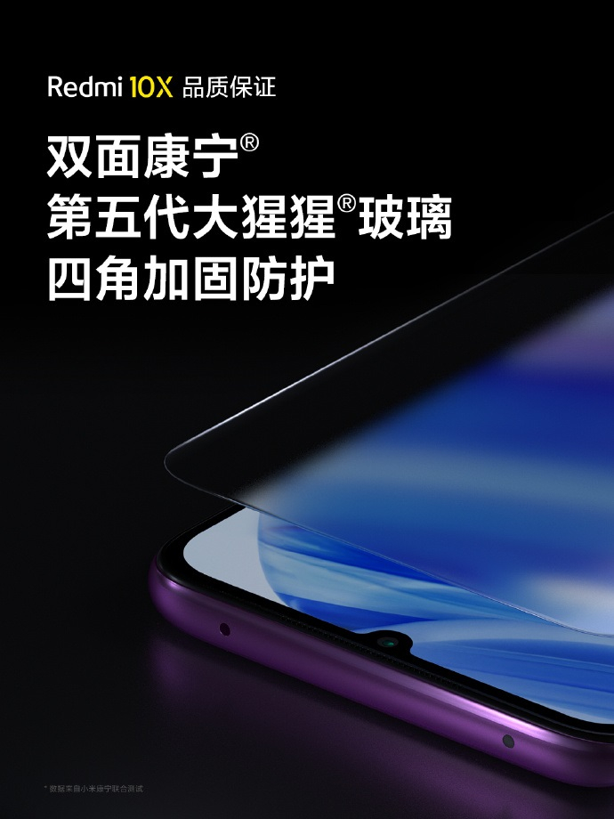 Redmi 10X拥有旗舰级品质保证 不仅自带手机隐形“雨衣”加厚纳米涂层,还有“I/O口密封硅胶圈”,巧妙的隔绝灰尘 。双面康宁GG5玻璃,助你大胆自我超越,耐磨耐划防尘防泼溅。