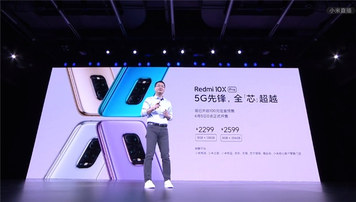 Redmi 10X Pro手机 8GB+128GB售价2299元,8GB+256GB售价2599元。6月5日正式开售。