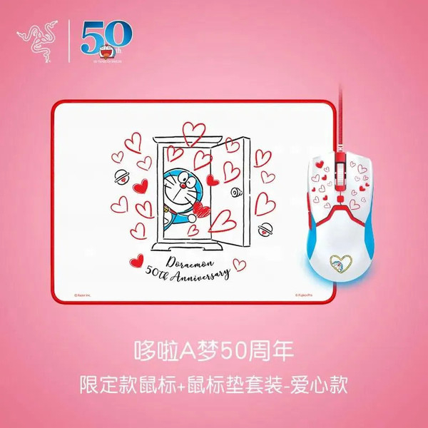 多啦A梦50周年限定款鼠标+鼠标垫套装爱心款(图源微博)