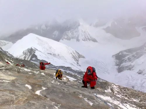 登山勇士们不畏险阻、