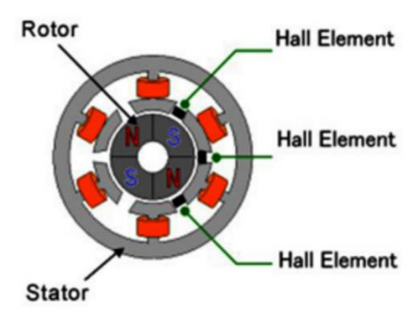 无刷电机内部安装有霍尔传感器,其可以根据转子不同位置时的不同磁场方向分布情况,而给出1或0的输出信号,三个传感器均匀安装,在360度的电角度上发生6次翻转电平,每次相差60度电角度,根据三个传感器的信号编码测出转子的位置,这就是常用的有感驱动方式。另外,无感驱动方式是通过检测和计算无刷电机转动过程中的电流、电压等参数变化,推测转子位置,进而进行换相的。