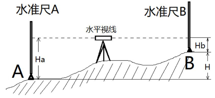 1,在两点之间架设水准测量仪,分别读取A和B两点的水准尺的读数Ha和Hb;