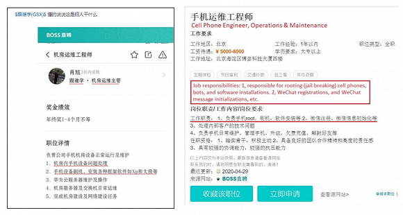 除了对跟谁学的解释做出点评外,浑水还表示,跟谁学公开招聘工程师来开发和维护刷单水军。岗位职责中称,招聘人员需对手机设备刷机,安装各种框架软件如Xp和太极等。浑水认为,这两款软件就是专门用来刷单的。