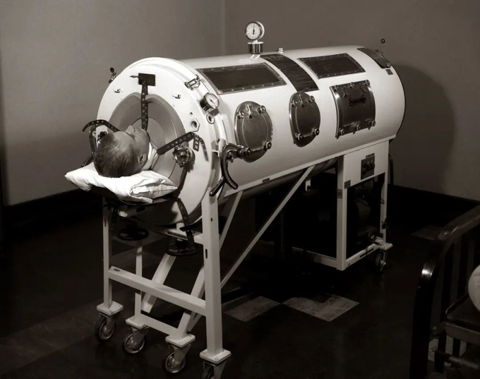 城市的另一边,巨大的圆筒“铁肺”却“吃”进越来越多的孩子,辅助他们呼吸。有些人从“铁肺”中走出来,有些人没能活着走出来,还有些人在“铁肺”中度过余生,四肢和身体装在罐子中,只露出头来吃、喝、呼吸……