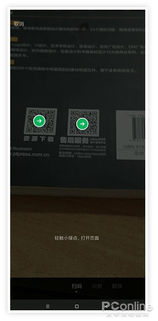 而在新版中,如果被扫物体包含了多个条码,微信会首先在每个条码上生成一个绿色箭头,需要哪个点哪个。点击后,微信才会继续识别。