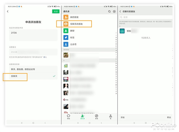 如果你在添加好友时,将对方权限设置为“仅聊天”,那么就会在“通讯录-仅聊天的朋友”看到他。