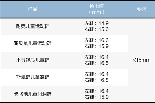 标签完整准确是一款产品最基本的要求之一了,而本次比较试验中,上述7款儿童鞋的标签是不够清晰完整的,主要问题有:未标注脚宽示值、生产月日或保修条款。