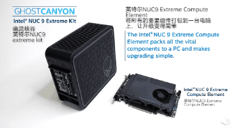 Intel NUC是当前迷你机市场集大成者之一,除了核显产品,NUC中还有extreme kit,依然在盒子大小的SFF尺寸主机内塞入了完整的CPU、内存、M.2 SSD、内存甚至是独立显卡(PCIe x16)。日前,外媒曝光了NUC 11 Extreme Kit,产品别名“幻影峡谷(Phantom Canyon)”。