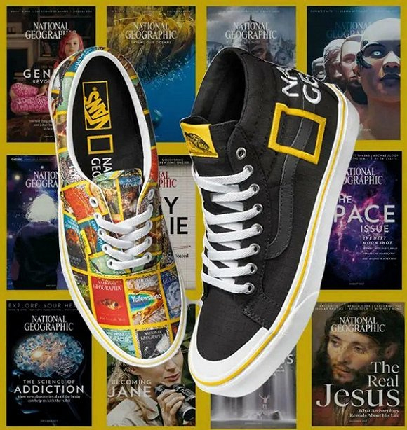 而Era的鞋身则印满《国家地理》历年以来经典的杂志封面,极具视觉冲击力。
