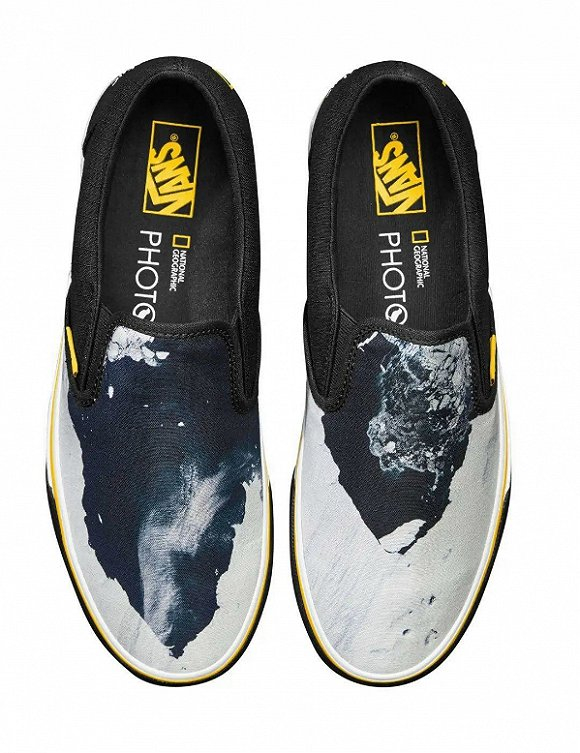《国家地理》拥有着庞大的大自然高清图库,其中,一张格陵兰岛松岛的唯美冰川照片被印刷在Slip-On鞋款的鞋头。
