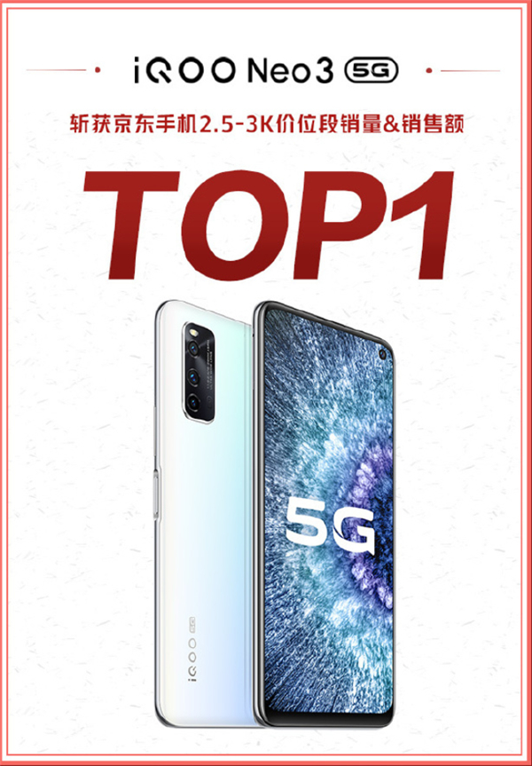 2398元最便宜865手机 iQOO Neo 3获京东2.5-3K价位销量冠军