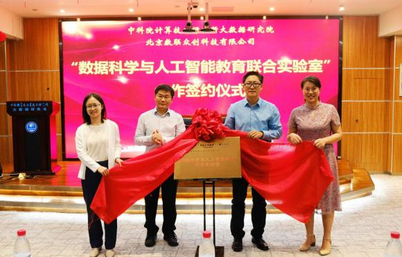 接着,王元卓与陈娟上台签约,参会领导程学旗、刘雪梅也共同为"中科院计算所大数据研究院&DataFountain联合实验室"揭牌,此次成立联合实验室,双方也将在大数据与人工智能教育培训、大数据与人工智能教育产品开发等方面开展合作,为郑州、河南,乃至全国的大数据与人工智能教育做出贡献。