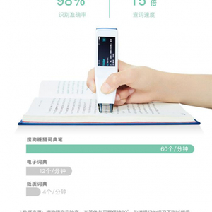 搜狗糖猫词典笔的翻译准确度高达98%。在翻译“Seeing is believing”时,其他翻译工具的翻译是:“看见才能相信”,搜狗糖猫词典笔能直接翻译成成语“眼见为实”,别的成语例如“守口如瓶”、“健壮如牛”都可以翻译,有这样的句子在作文里,想不拿高分都难。对于英语课本上常见的花体字,甚至是大多数人眼可辨认的手写字体,词典笔也能完整识别。
