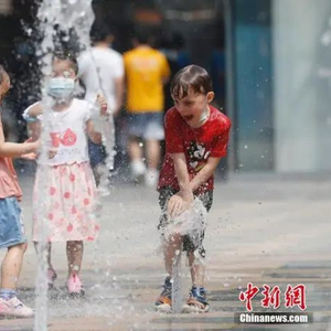图为儿童在喷泉中玩耍。中新社记者 韩海丹 摄