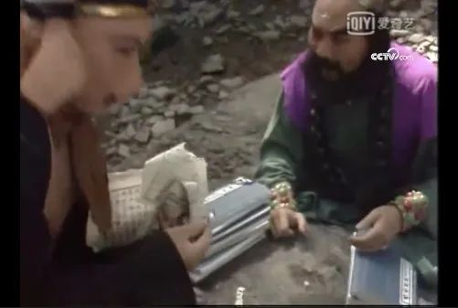 86版电视剧《西游记》最后一集,取回真经的师徒在通天河里翻了车,经书落水,唐三藏只能带着徒弟们在大石头上晒经。收拾经卷时,二师兄粗心大意,还将纸页沾在了石头上。