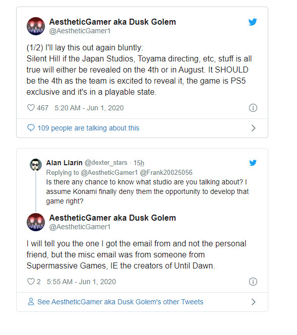 根据Dusk Golem,新《寂静岭》游戏已经处于可玩状态,由索尼日本工作室开发。他表示这款游戏要么在本周五的PS5展示活动上公布,要么是在今年8月的State of Play直播活动上亮相,但考虑到索尼日本工作室很迫切地想要展示它,因此新《寂静岭》更有可能在本周的活动上公布。Golem还表示,新《寂静岭》是PS5独占。