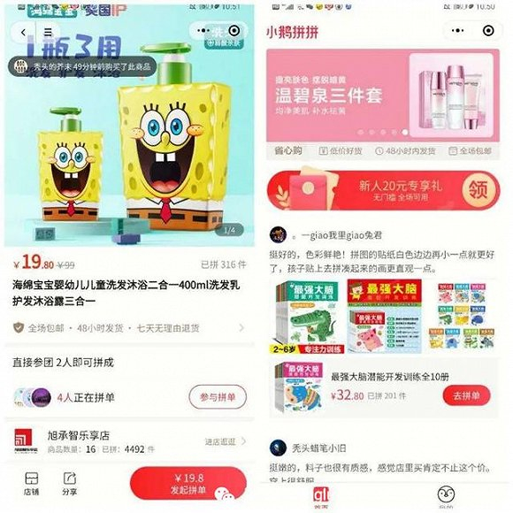 但对于拼购这条赛道来说,下沉市场用户必然是下半场竞争的核心,在拼多多的低价、天猫的官方旗舰店保证正品之间,小鹅频频似乎并没有自己的核心竞争力。