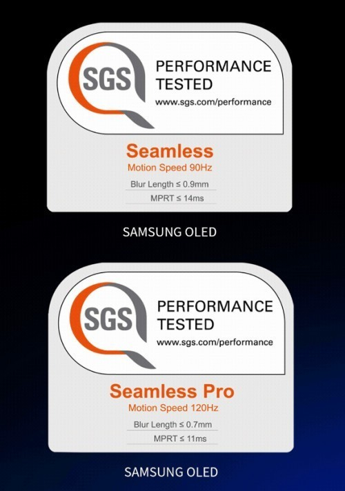 SGS表示,三星90Hz及120Hz OLED的拖影长度(Blur Length),最长分别为0.9mm和0.7mm,动态影像响应时间*2(Motion Picture Response Time)最长分别为14ms和11ms,两项指标在业界都属领先水平。