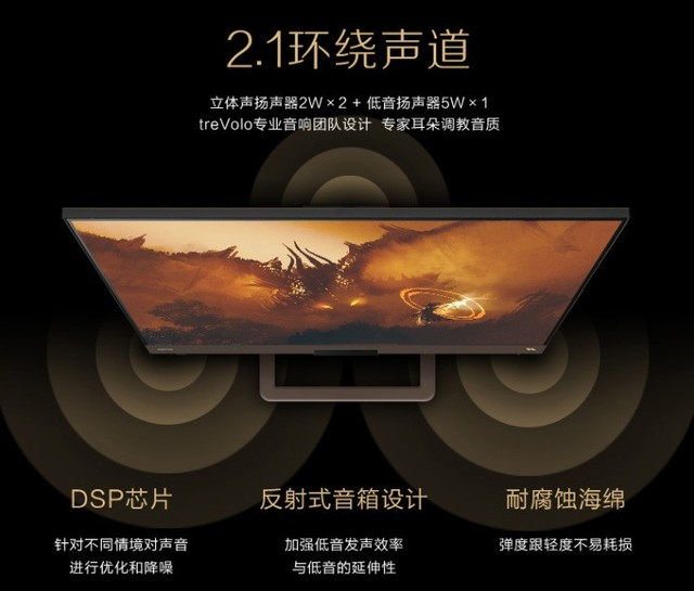 明基EW3280U在音质方面下了很多功夫,拥有2个2W喇叭组成立体声扬声器,还增加一个5W的低音喇叭,低频下潜更深。并且还有专业音箱团队进行调音设计,确保三个喇叭之间有很好的融合度。拥有对话、派对、影院、游戏等五种音效预设,用户可自由选择使用场景,以获得更加的音质效果。同时内置DSP芯片,针对不同情境对声音进行优化、降噪。这一套组合拳使得明基EW3280U这款显示器的内置音响系统拥有很好的音质。
