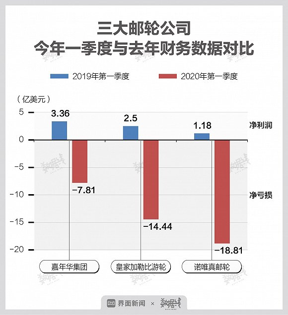 今年一季度财务业绩,嘉年华集团一季度净亏损7.81亿美元;皇家加勒比游轮集团净亏损14.44亿美元;诺唯真邮轮集团一季度净亏损18.8亿美元。