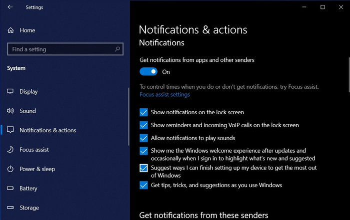 · 用户还可以取消选中 “向我展示 Windows 欢迎体验”和 “获取提示,技巧和建议”这两个选项以减少 Windows 10 上的建议和类似提示。