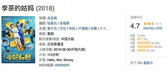 也是在这一年,开心麻花的内容板块迎来了“两部”失利作品——一部是由沈腾主演、开心麻花负责参投的《西虹市首富》,另一部则是纯麻花制作的《李茶的姑妈》。很可惜,这两部作品皆在市场中得到了不同的失利,前者虽然在沈腾的力挽狂澜下取得了25亿票房,但口碑不佳,后者则是失名又失利,《李茶的姑妈》也彻底将“开心麻花出品必属精品”的招牌,彻底打破。