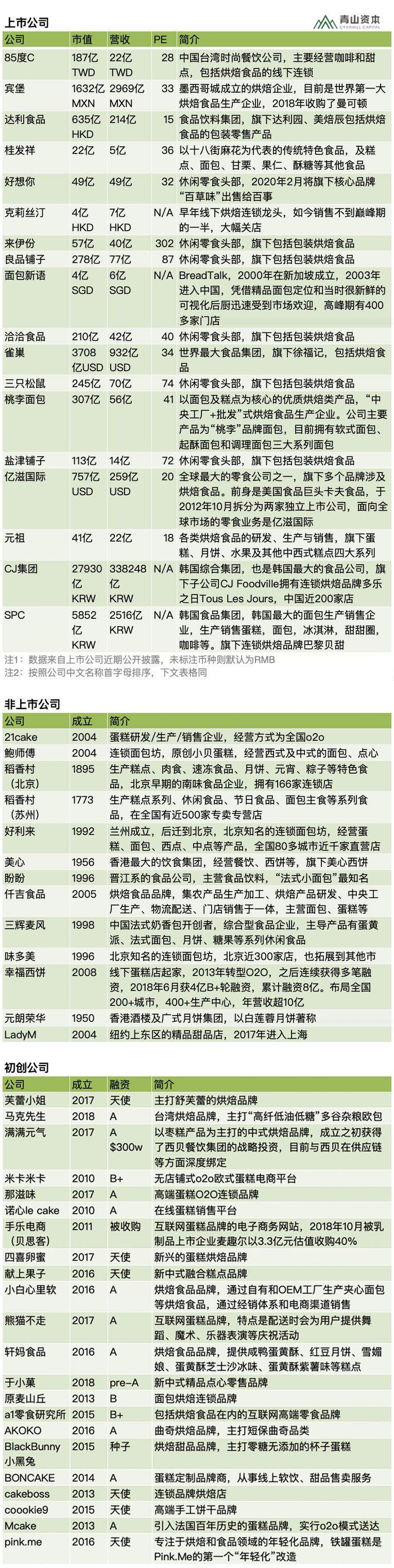 传统烘焙(好利来、面包新语等)、o2o(21cake、幸福西饼等)
