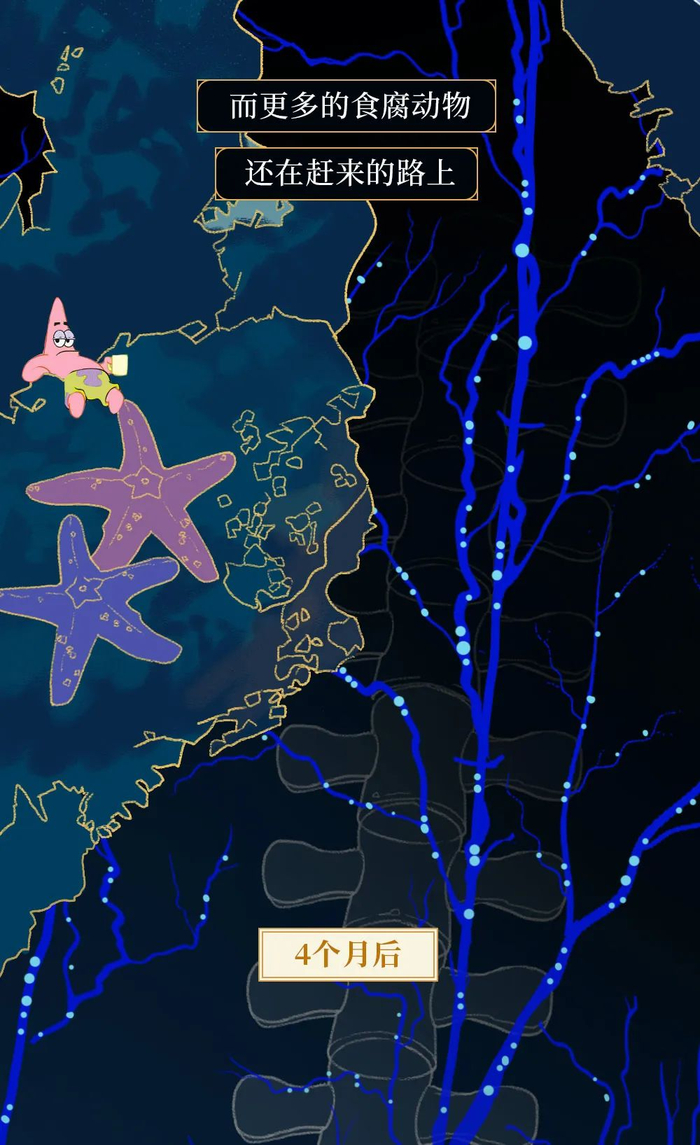 所以,鲸落在世间并不常见,而且由于深海探索对人类依旧困难,在全世界范围内发现的真正自然造就的鲸落现象不足50个。于是,拥有辽阔海域的我国,直到2020年3月18日,才终于在南海发现了一个自然鲸落。