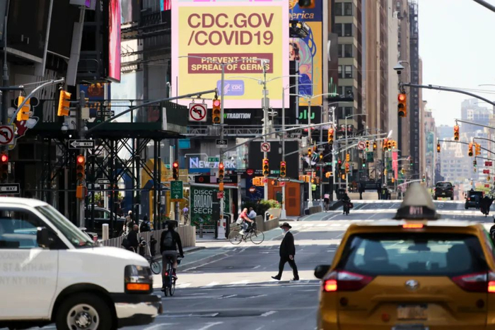 5月4日,美国纽约时报广场行人车辆稀少 图丨新华社
