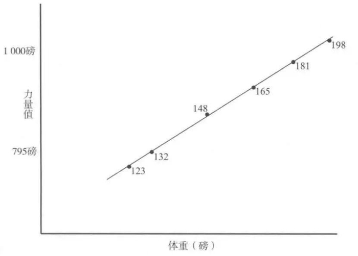举重冠军的力量与体重的关系:化学家M·H·Lietzke研究了1956年奥运会举重比赛的成绩,将每个级别的金牌成绩和运动员的体重放在一起,发现其对数关系的斜率是0.675,非常接近上面提到的“力量正比于体重的2/3次方”这个定律。