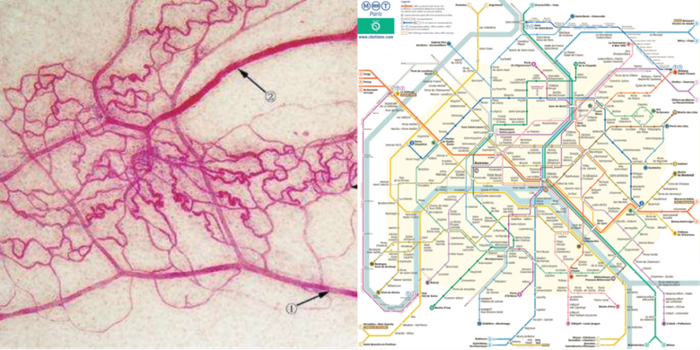 回到我们在文章开篇时的比喻。本质上,毛细血管、社交网络、城市的基础设施网没有什么不同,都有生物体内网络的分形特质。