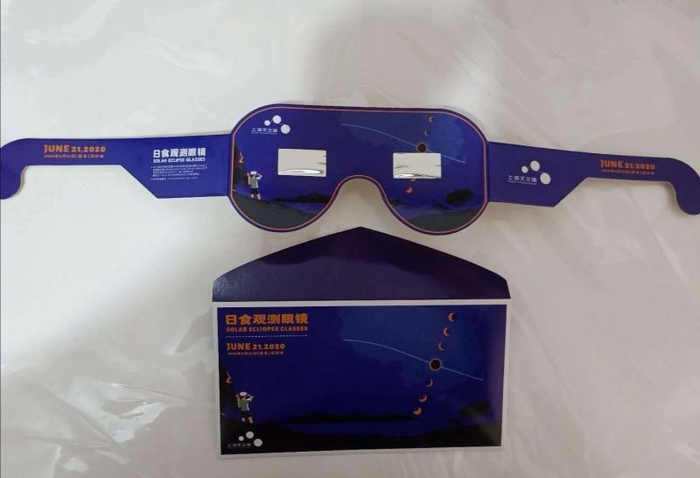 如果你选择肉眼观测,那么日食眼镜是首选。为了让公众安全地观赏日食,上海天文馆近期监制生产了3000多副日食眼镜,已在上海科技馆及其网店限量销售。这批产品选用德国巴德公司生产的专用于目视的太阳滤光膜AstroSolar,即俗称的“巴德膜”。这种滤光膜得到欧盟CE认证。“疫情期间,巴德公司被迫停工。经过协调,我们获得了为数不多的巴德膜及其授权文件,只够制作3000副日食眼镜。”施韡告诉解放日报•上观新闻记者,“我们根据过去使用经验对眼镜做了几处优化设计,并接受了知名检测认证机构SGS的检测。”