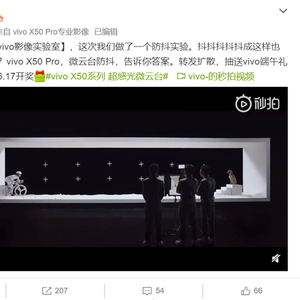 【手机中国新闻】自vivo X50系列发布以来,突破性的“微云台”结构就受到了用户们的欢迎。6月10日,vivo官微发布一则来自vivo影像实验室的防抖对比视频,通过三个级别的抖动场景,全方位展现了vivo X50 Pro微云台技术的防抖实力。