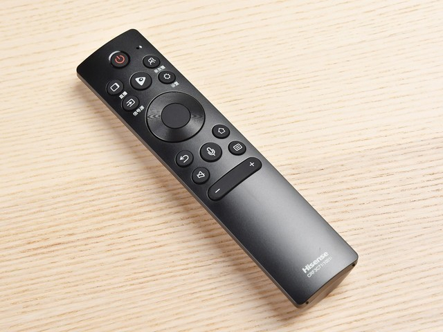 遥控器进行了最大程度的简化,让手握上去更加舒适,每个按键非常精准,没有出现迟滞或不精准的情况。同时遥控器还搭配了快速切换的按钮,它可以在系统中定制一键直达的功能,这样简单快速的操控方式可以很好地满足使用者的需求。