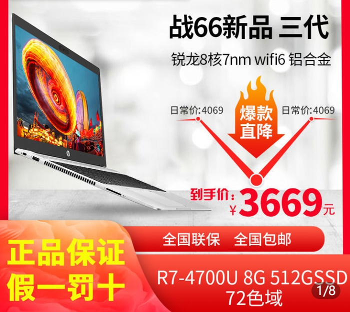R7-4700U 8G 512GB SSD 领 400 元券后价仅需 3669 元。