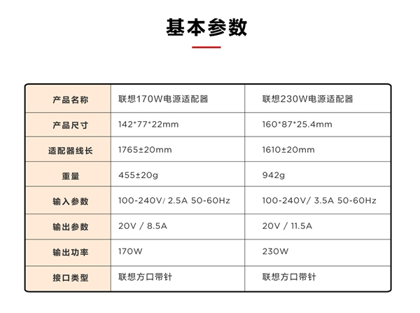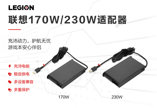 联想拯救者170W、230W方口电源适配器开卖:瘦身30%