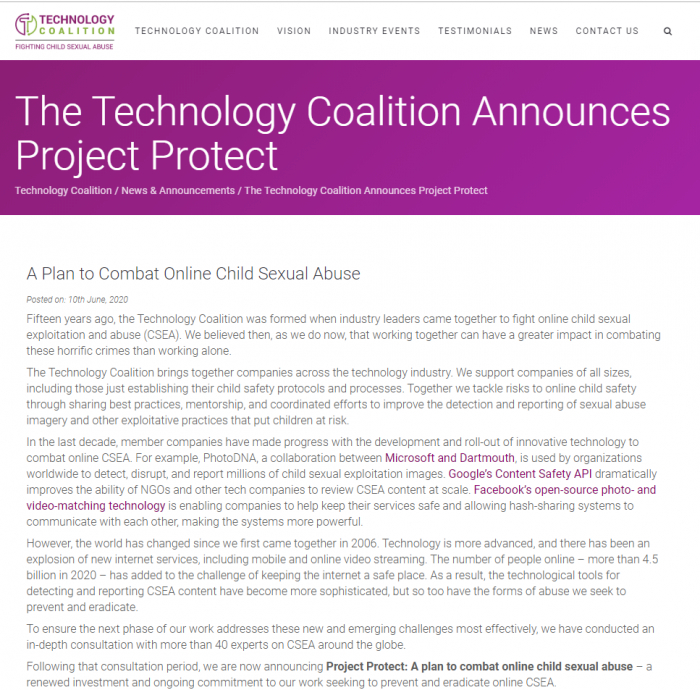 技术联盟成立于2006年,与儿童慈善机构和联合国儿童基金会等国际组织合作,为寻求在整个互联网上落实儿童保护的科技平台提供指导和资金。