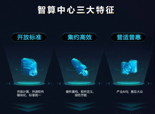 什么是智算中心?陈彦灵介绍说,智算中心是智慧时代最主要的计算力生产中心和供应中心,以融合架构计算系统为平台,以数据为资源,能够以强大算力驱动 AI 模型对数据进行深度加工,源源不断产生各种智慧计算服务,并通过网络以云服务形式向组织及个人进行供应。