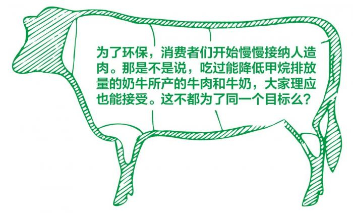 如果我们能降低甲烷排放量,无论吃消化系统内含有红海藻的奶牛产生的肉和奶,还是吃植物人造肉,不都是为了同一个目标吗?