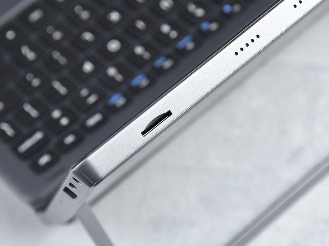 对于轻薄的平板电脑来说,键盘的键程设计都是较短的,在实际的敲击体验中,还是能够明显感受到回弹时的反馈,输入时的回弹也很清脆舒适,有点类似剪刀式键程的触感。另外,键盘整体做了磨砂处理,摸起来质感十足。