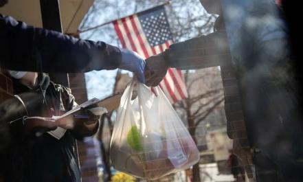2020年3月18日,纽约州新罗谢尔,市民从westcop中心领取免费的食物