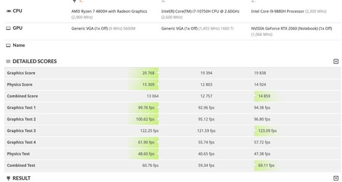 随着搭载Radeon RX 5600M显卡的产品逐渐推出,其性能跑分也陆续曝光。根据此前外媒透露的一组R7 4800H+RX 5600M的3DMark跑分显示,RX 5600M的性能远超GTX 1660Ti,与RTX 2060不相上下。
