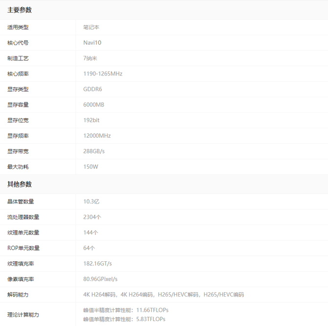 Radeon RX 5600M详细参数: