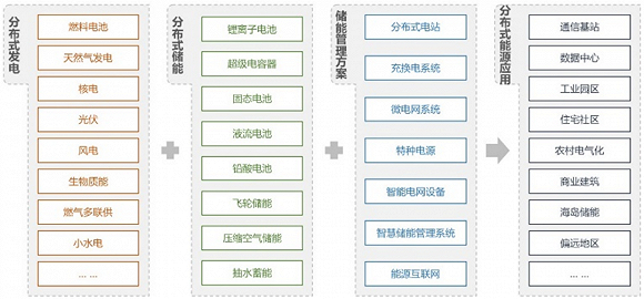 分布式能源是一种布置在用户侧的集能源生产消费为一体的能源供应方式,可为用户提供冷热电多种能源供应,具有就地利用、清洁低碳、多元互动、灵活高效等特征,是现代能源系统不可或缺的重要组成部分。分布式储能是分布式能源系统的必要辅助,分布式储能系统接入位置灵活,目前多在中低压配电网、分布式发电及微电网、用户侧应用。